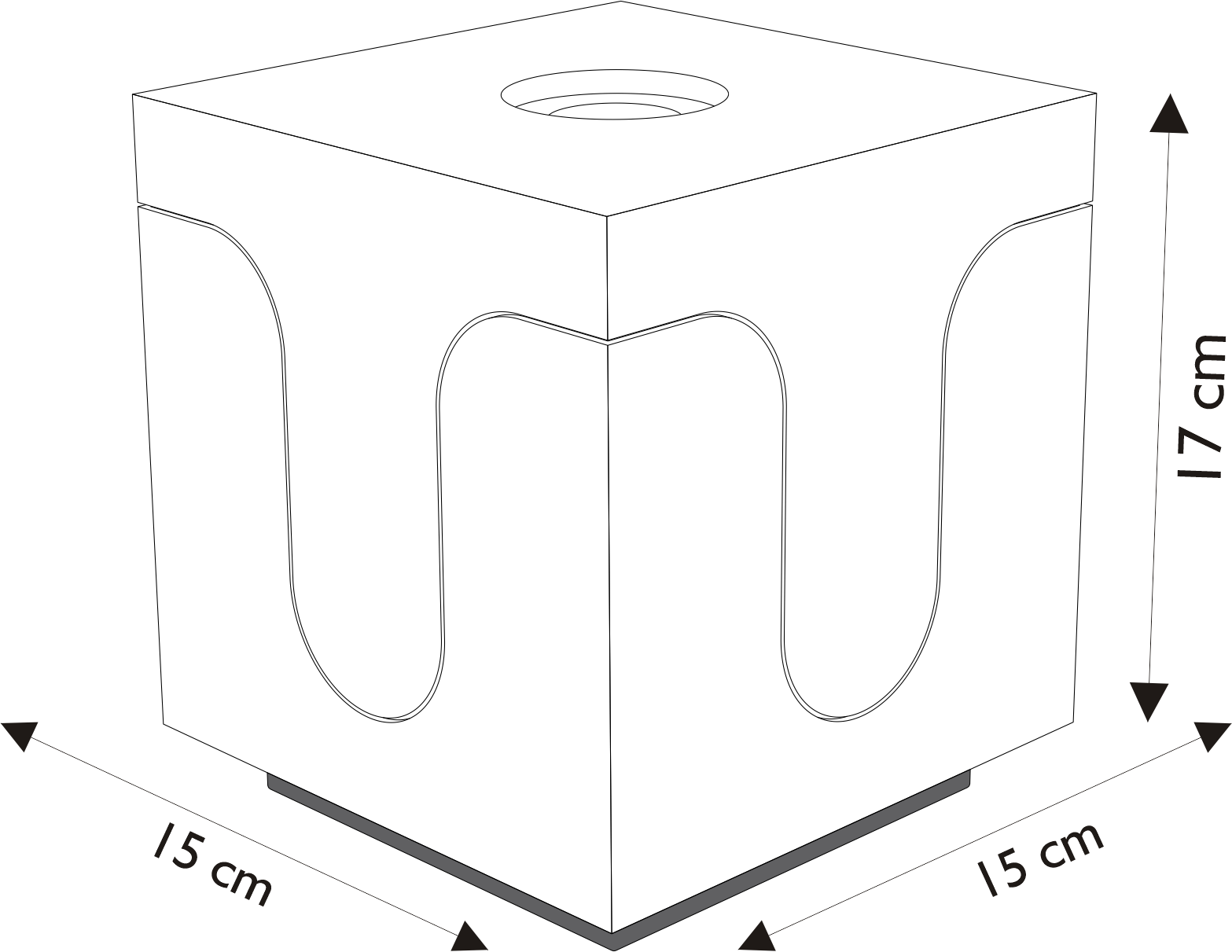 15 cm (profundidad) x 15 cm (ancho) x 17 cm (alto).