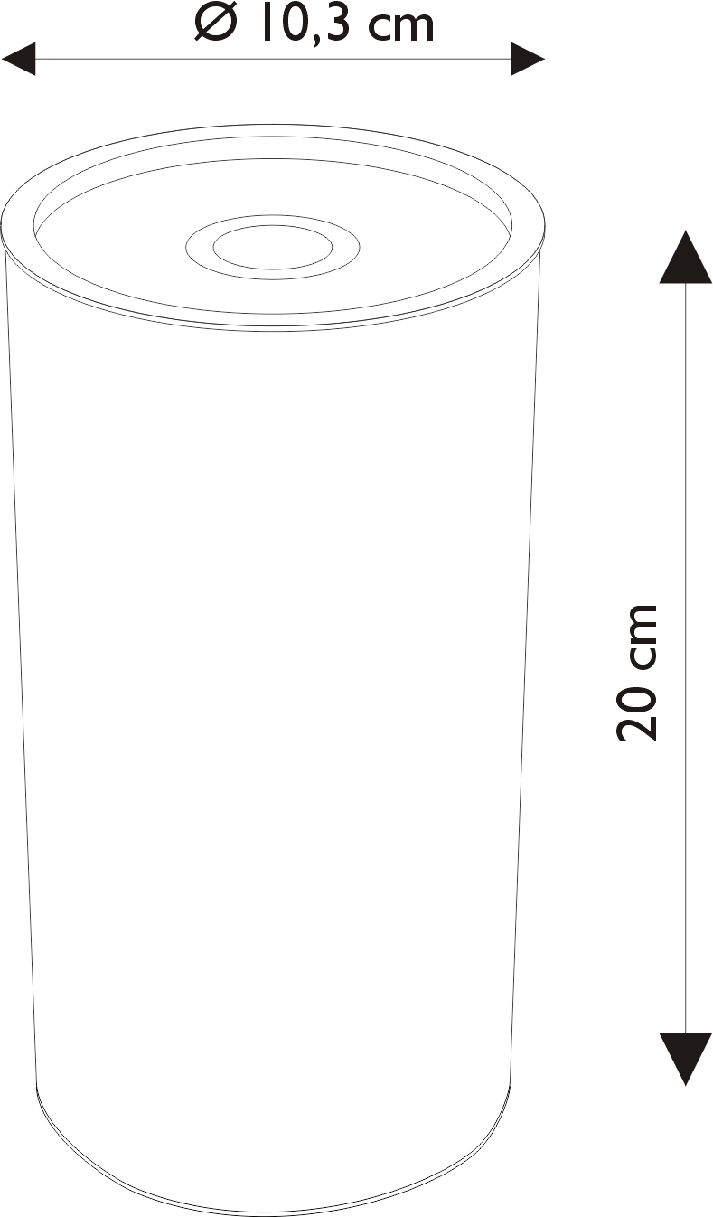 10.3 cm (diámetro) x 20 cm (alto).